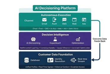 Unlike chatbots that follow scripts or copilots that suggest next steps, AI agents on these platforms reason over unified customer data as it flows in, execute workflows end to end, and learn from outcomes. They don't wait for nightly batch exports or stale data snapshots — they query live, governed data the moment a decision needs to be made.