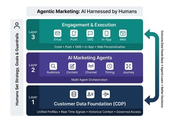 - RBAC (Role-Based Access Control) — Agents run with end-user permissions. A marketing manager's agent sees different data than an analyst's. On a CDP, these permission models already exist for segmentation and reporting — agents simply inherit them.